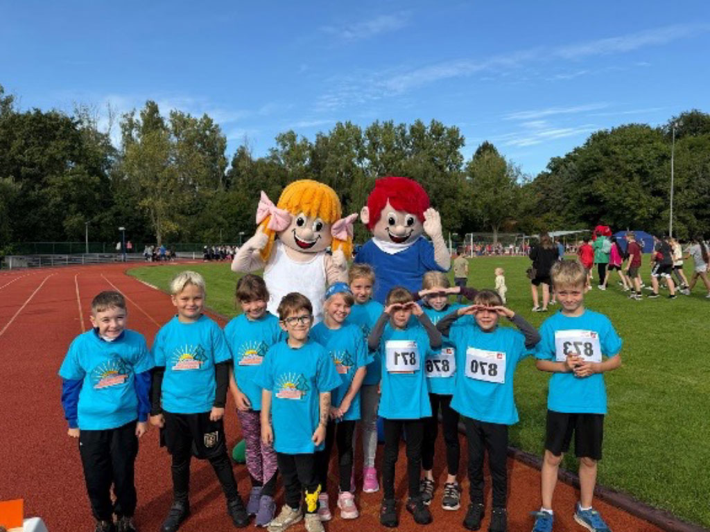 Wir, die Klasse 2a und 2b waren beim Finsterwalder Dutzend und damit beim Sparkassenlauf dabei und rannten für die Klassenkasse. Von den Eltern organisiert und tatkräftig unterstützt, liefen mindestens 10 Schülerinnen und Schüler pro Klasse die Strecke von 2km. Im Zieleinlauf gab es eine Medaille, natürlich die 100€ für die Klassenkasse und demnächst auch noch eine Urkunde.