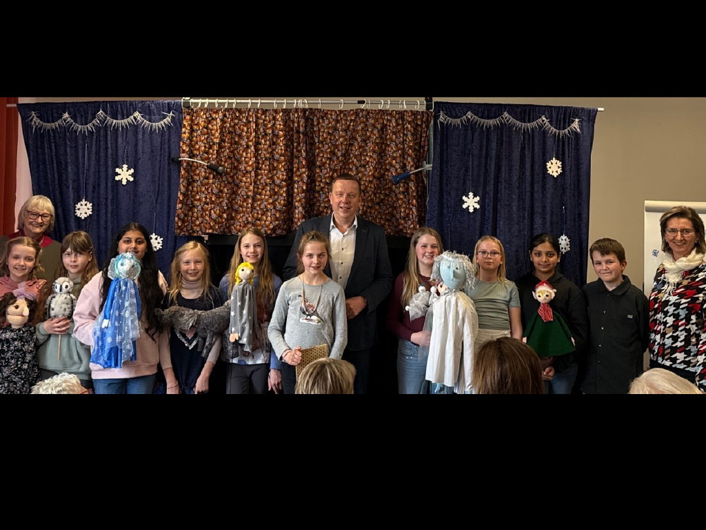 Am Dienstag, den 24.03.2026 erwarteten voller Vorfreude die Kinder der Figurentheater-AG unter der Leitung von Frau Karin Heym den Landrat Christian Jaschinski und weitere geladene Gäste im Theaterraum der Grundschule Rückersdorf zur letzten Aufführung des Stückes „Ein Winterzauber“. Die Hauptakteure, neun Mädchen und ein Junge, ernteten im Anschluss viel...